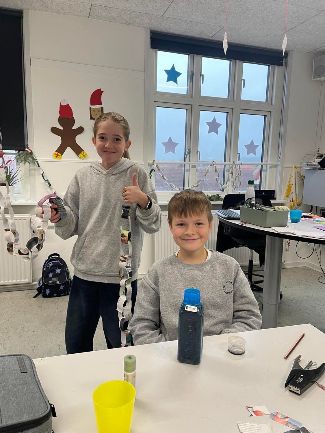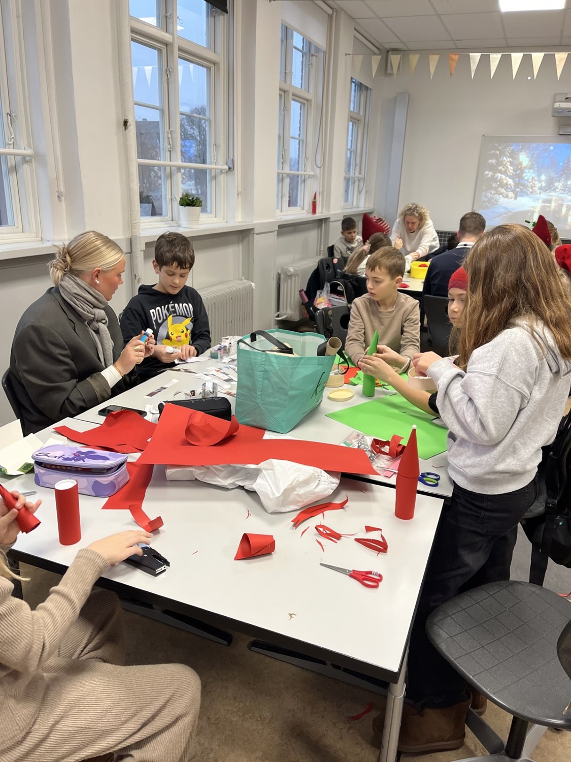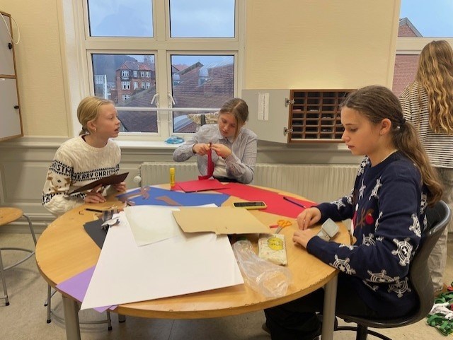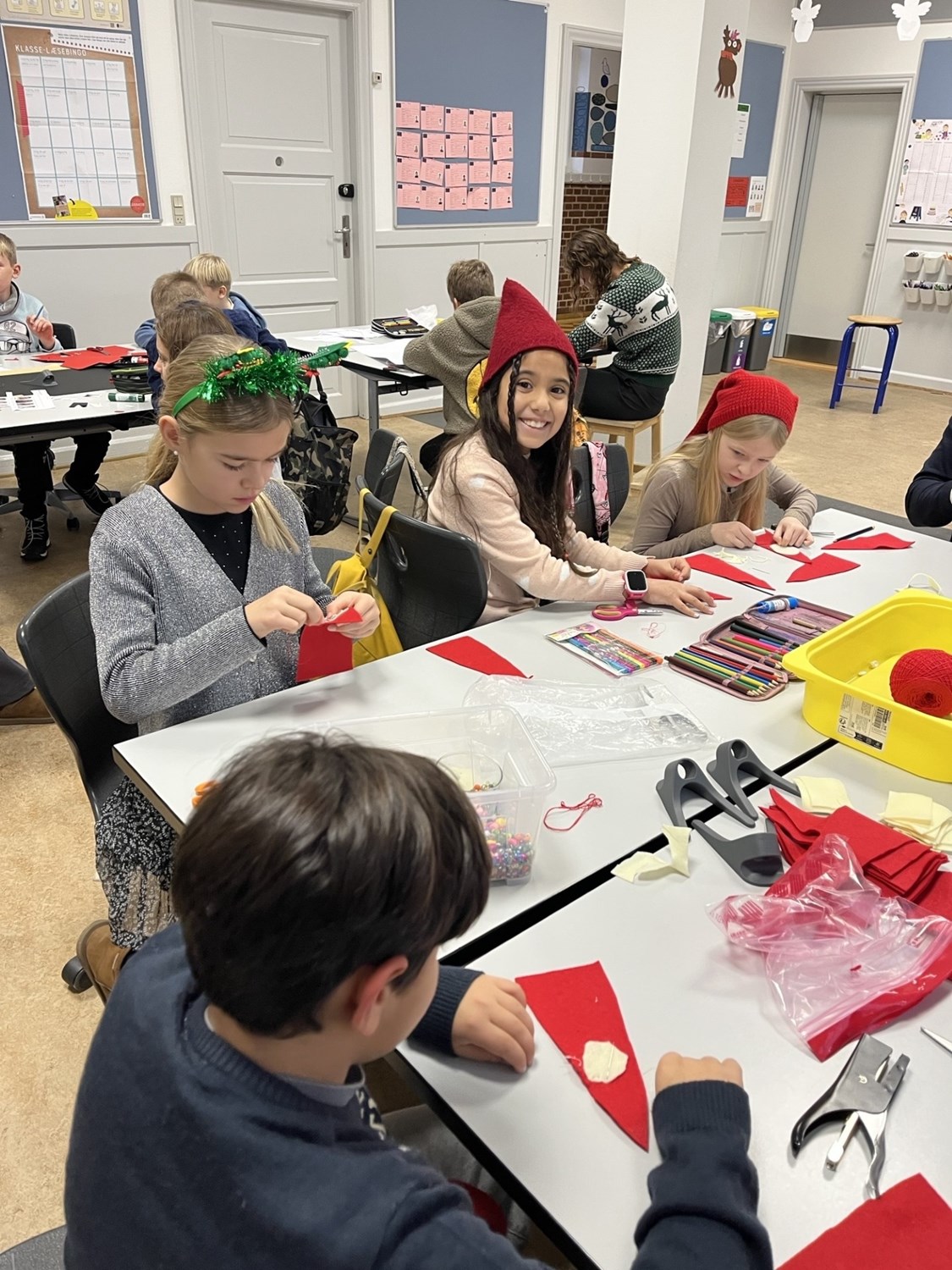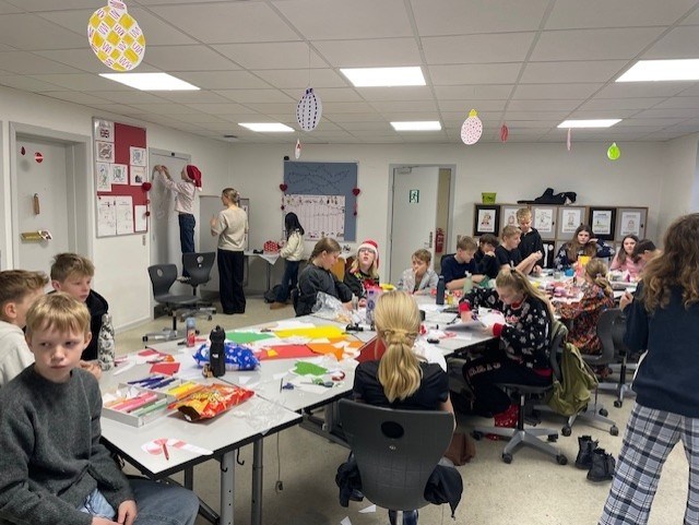 ​Hele skolen har i dag afholdt den årlige juleklippedag. Der blev klippet, klistret og pyntet flot op i klasserne og på gangene, og elevrådet stod for at dele æbleskiver ud. Nu kan december måned og julen bare komme an.