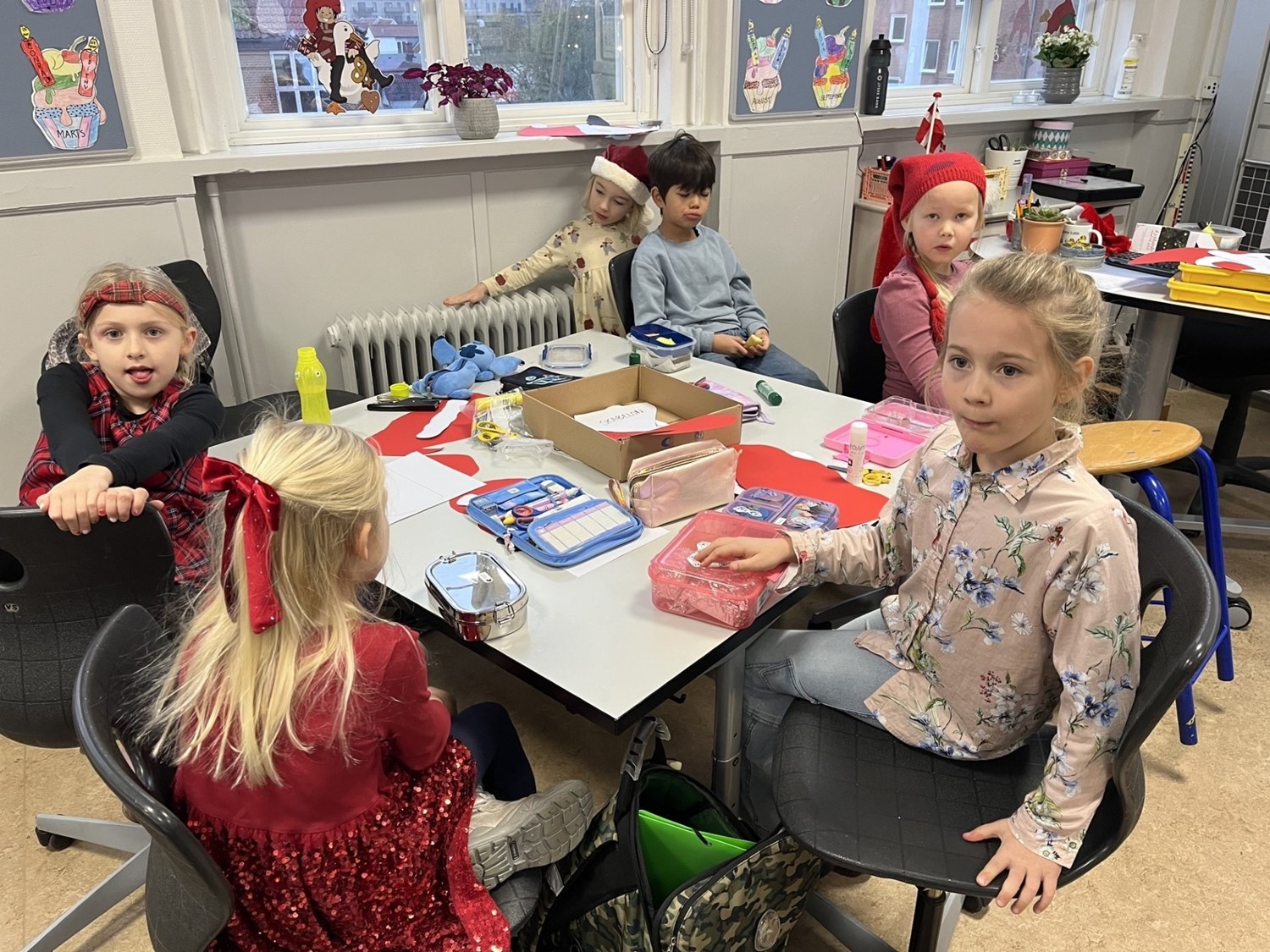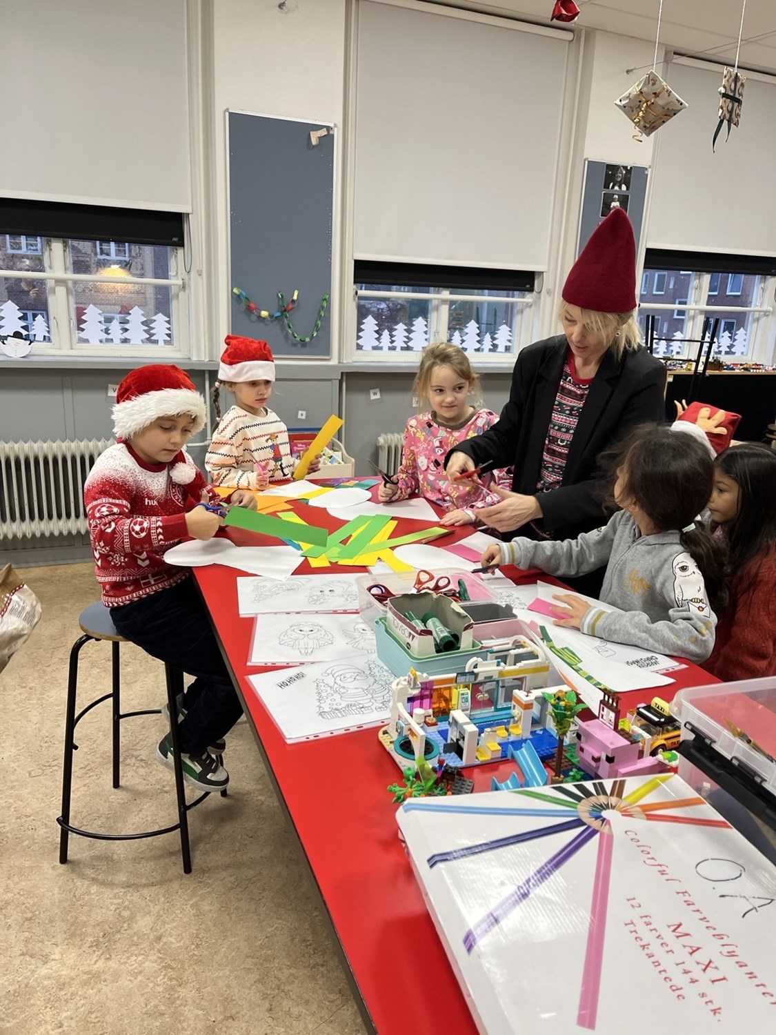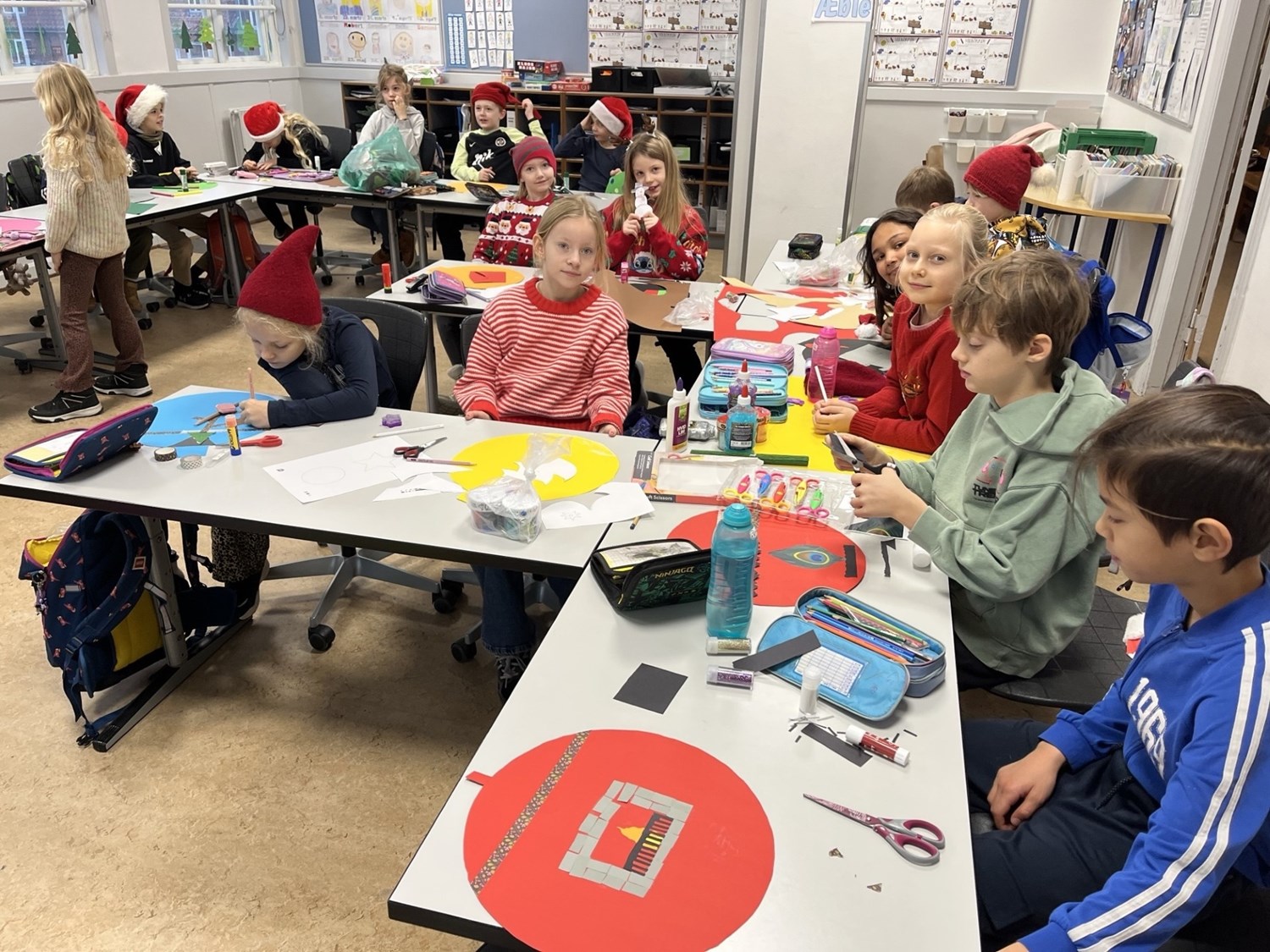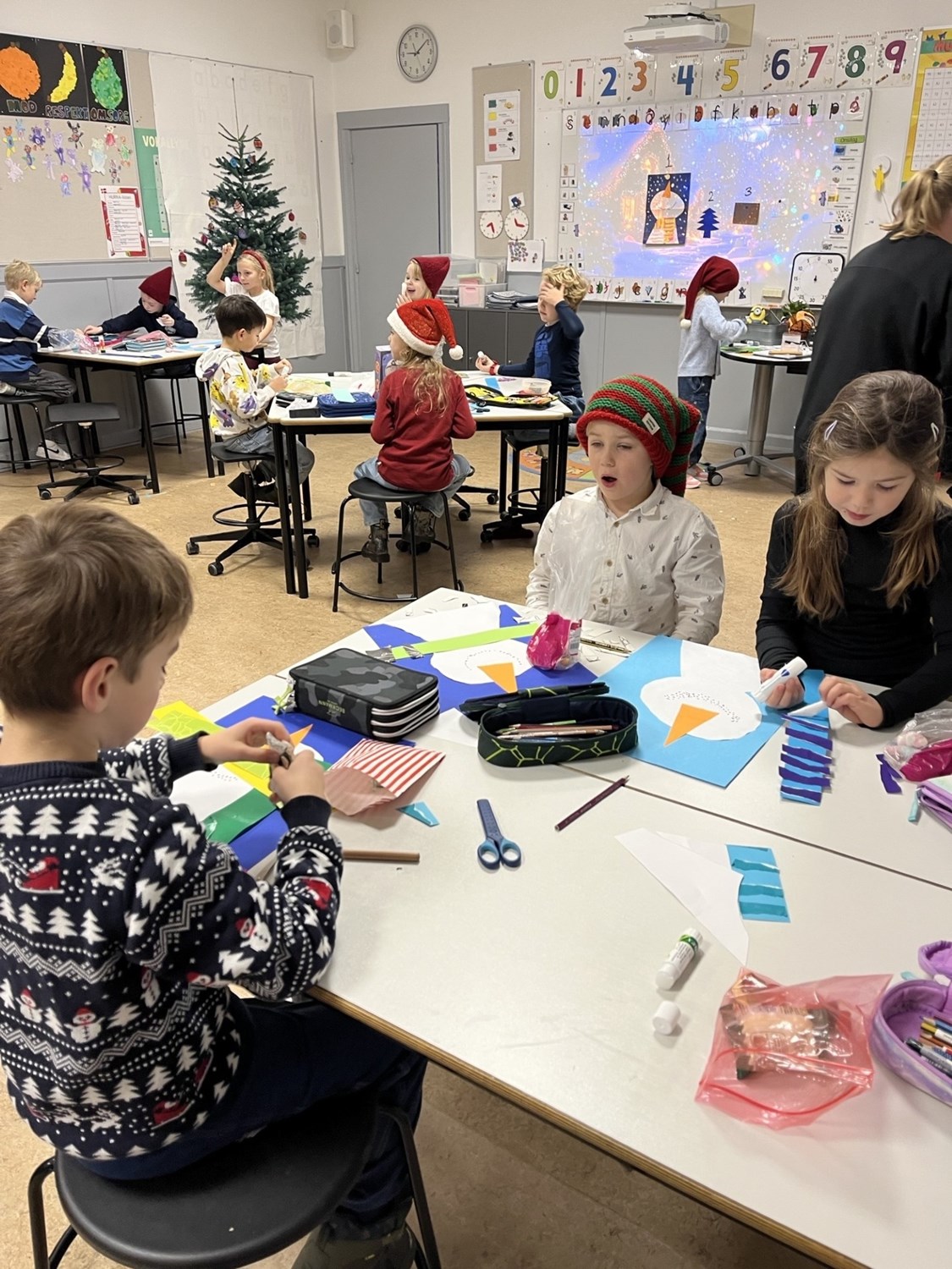 ​Hele skolen har i dag afholdt den årlige juleklippedag. Der blev klippet, klistret og pyntet flot op i klasserne og på gangene, og elevrådet stod for at dele æbleskiver ud. Nu kan december måned og julen bare komme an.