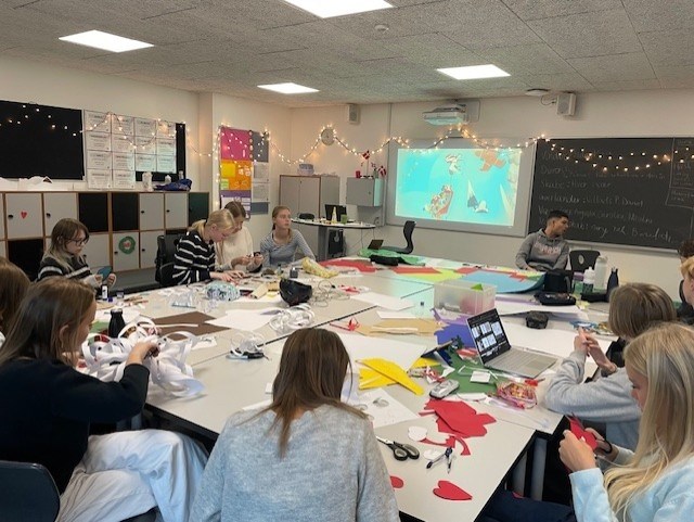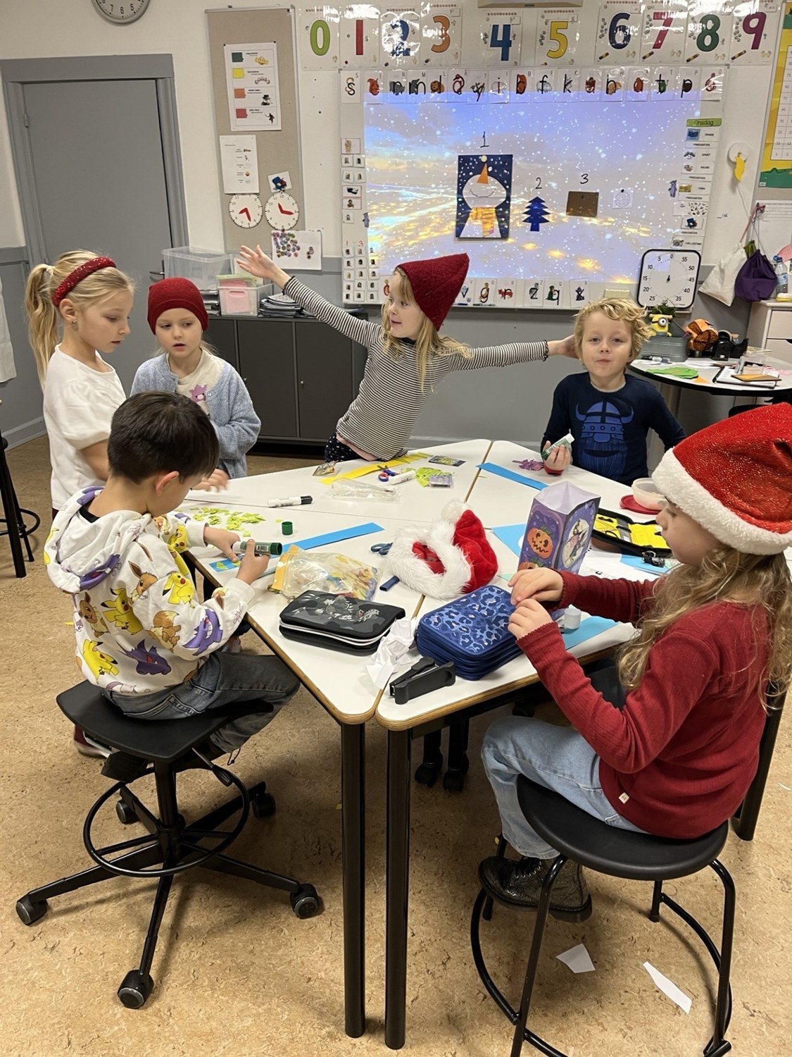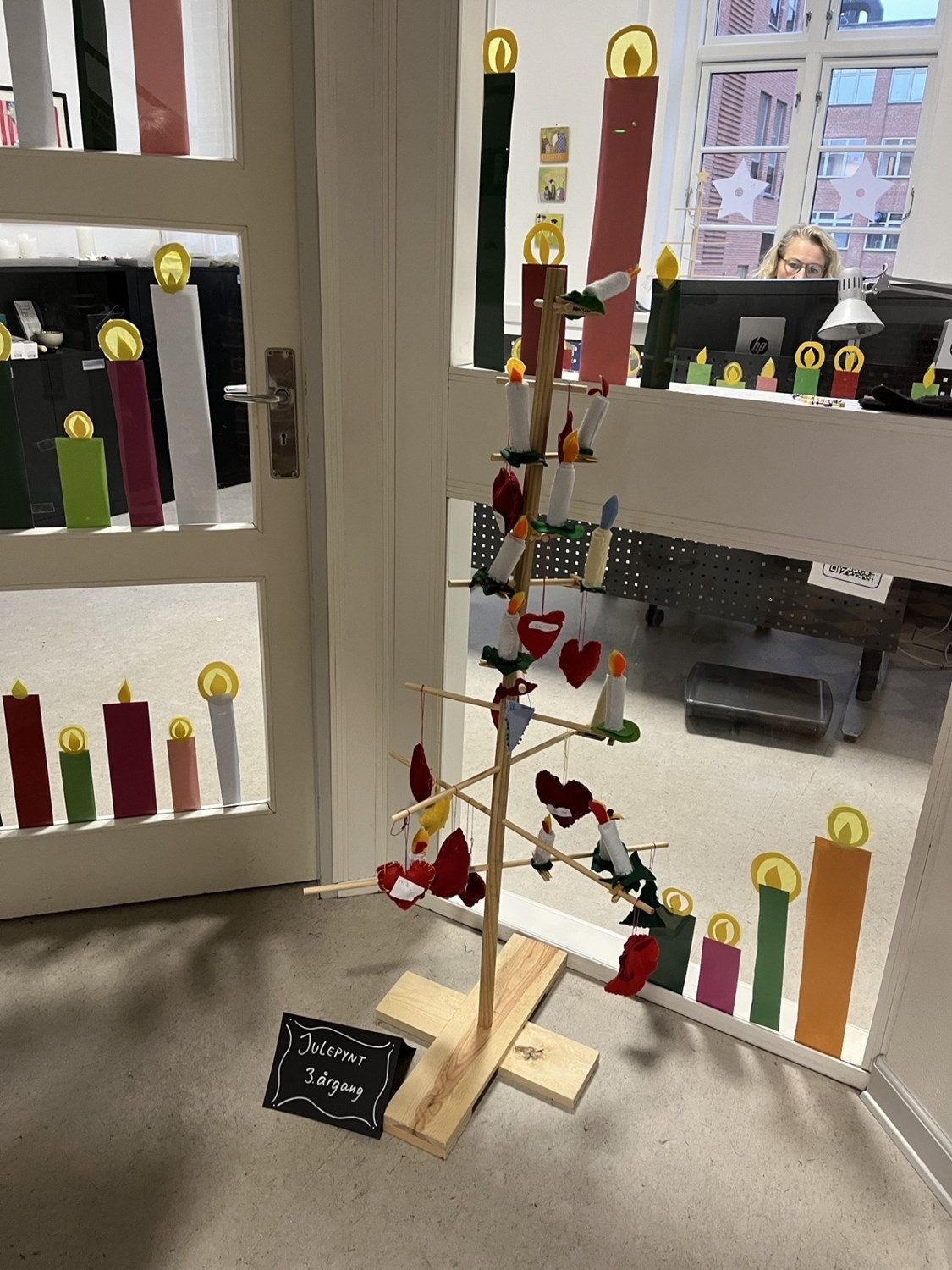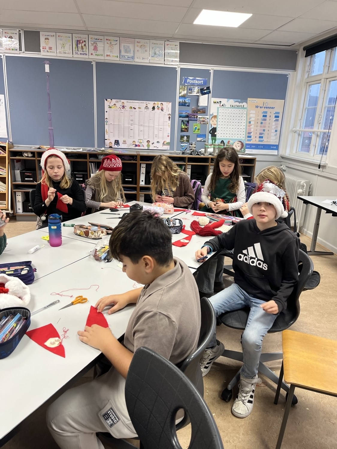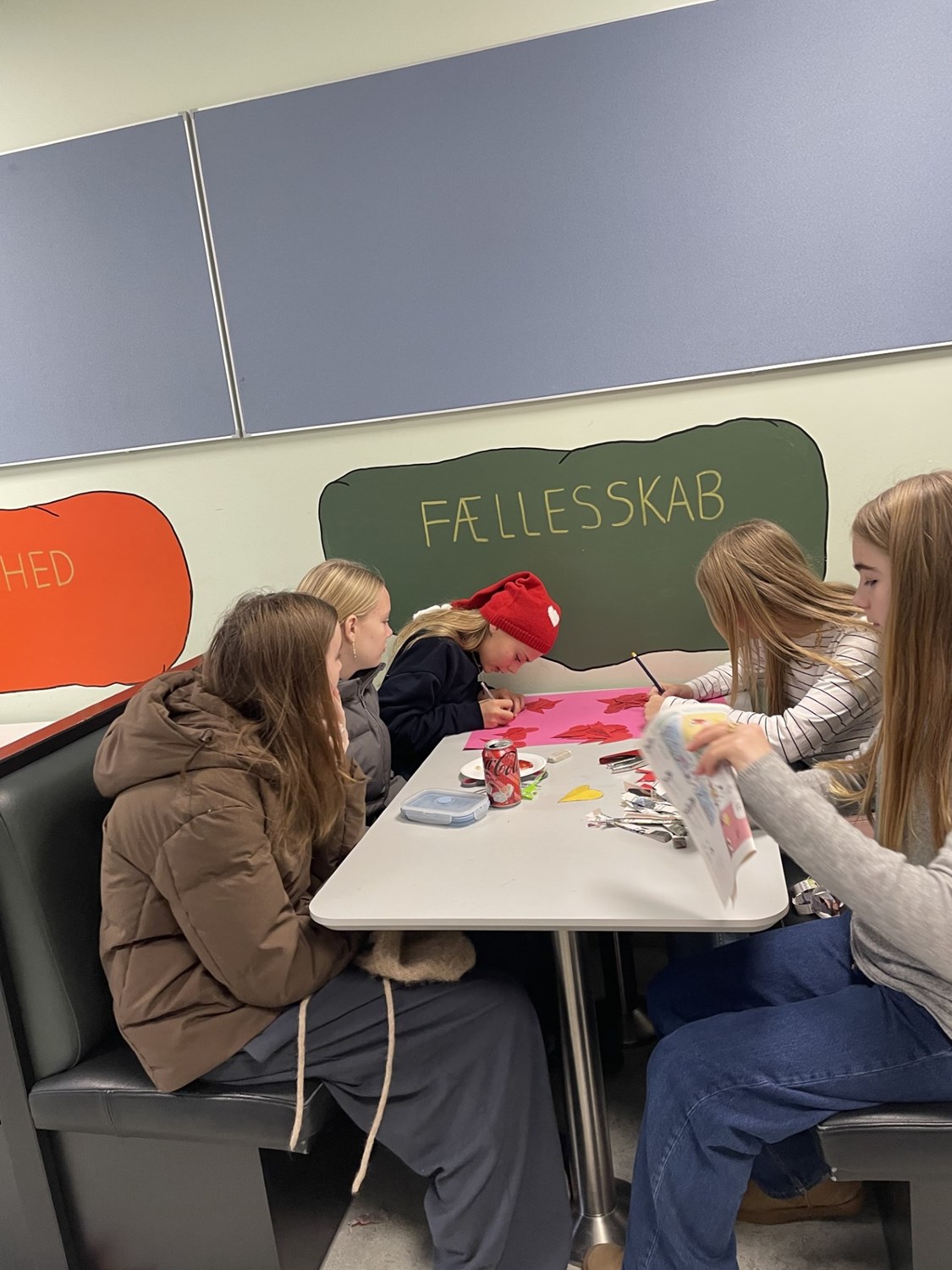 ​Hele skolen har i dag afholdt den årlige juleklippedag. Der blev klippet, klistret og pyntet flot op i klasserne og på gangene, og elevrådet stod for at dele æbleskiver ud. Nu kan december måned og julen bare komme an.