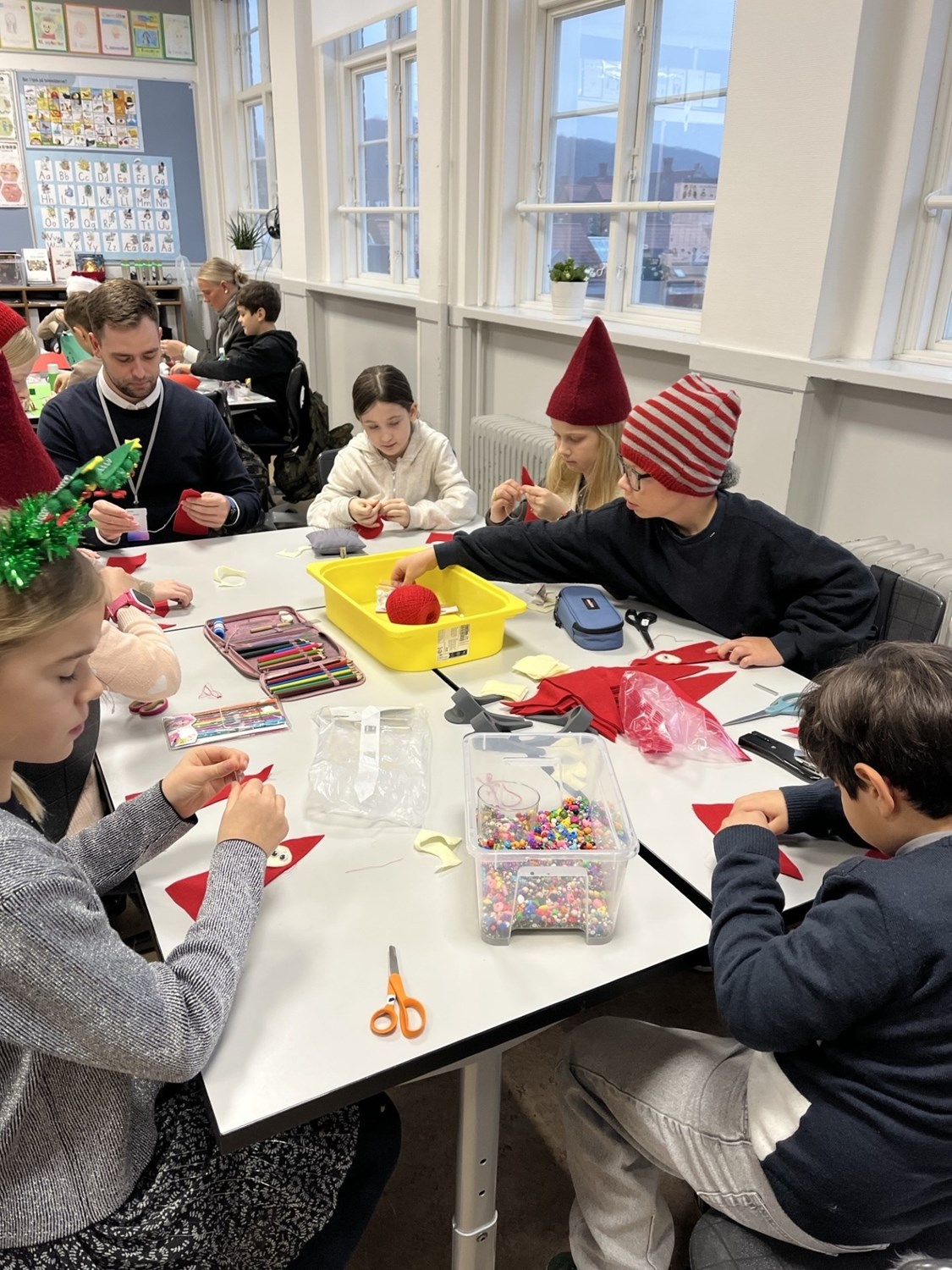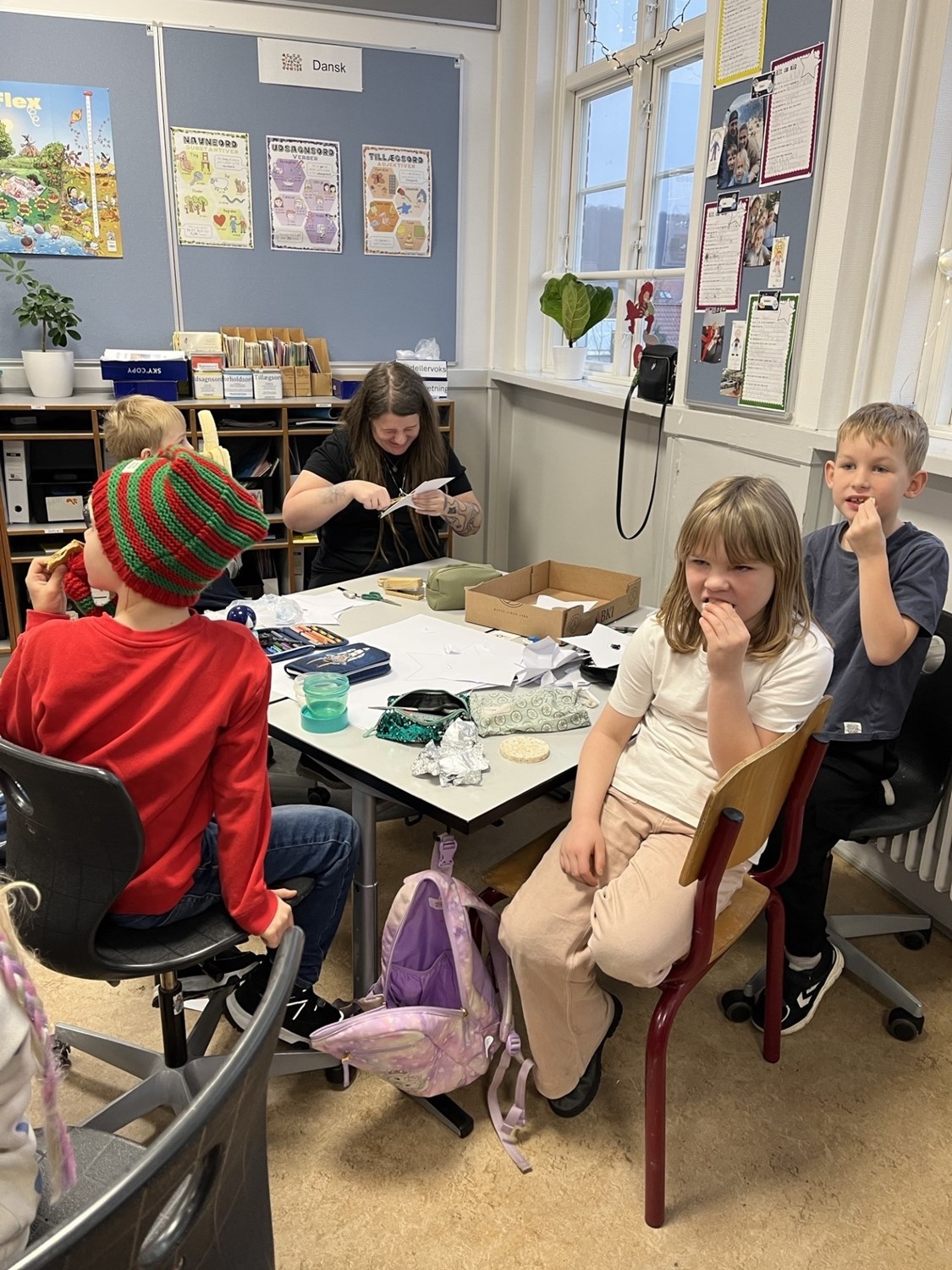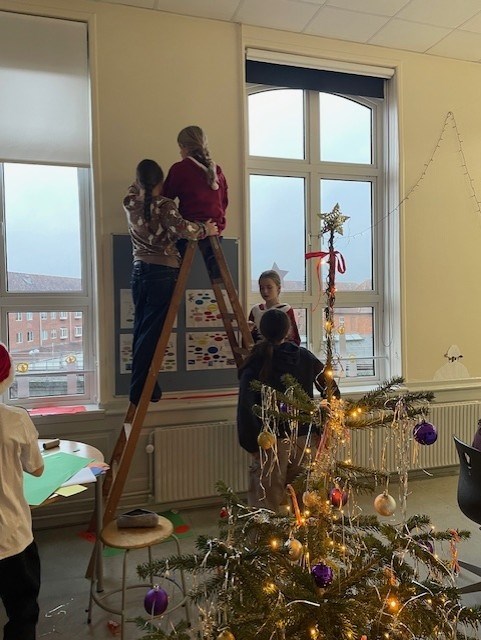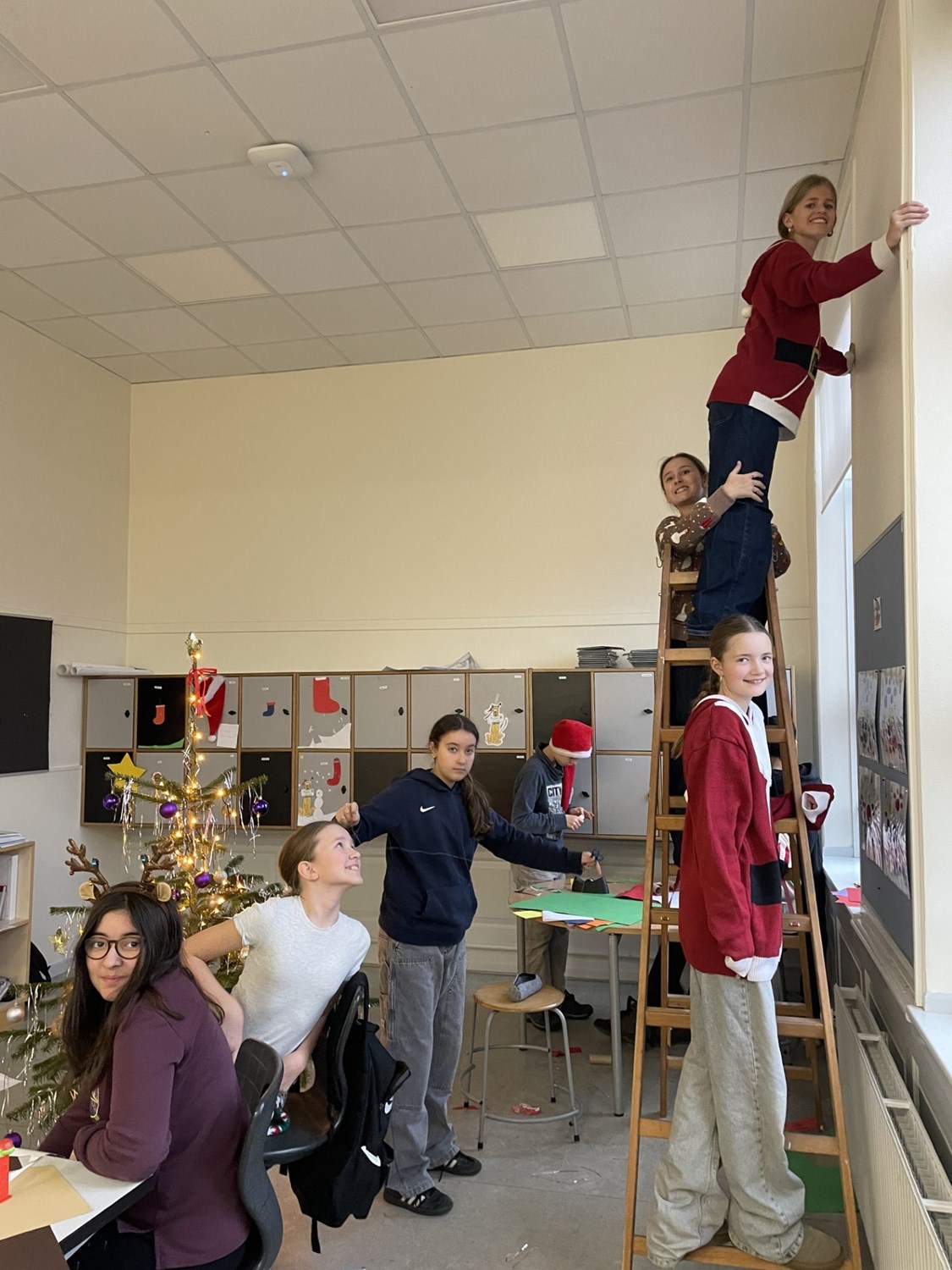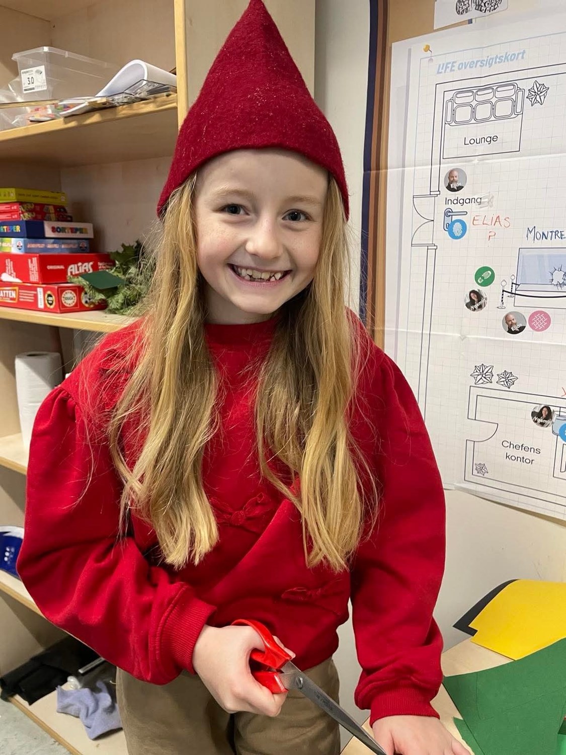 ​Hele skolen har i dag afholdt den årlige juleklippedag. Der blev klippet, klistret og pyntet flot op i klasserne og på gangene, og elevrådet stod for at dele æbleskiver ud. Nu kan december måned og julen bare komme an.